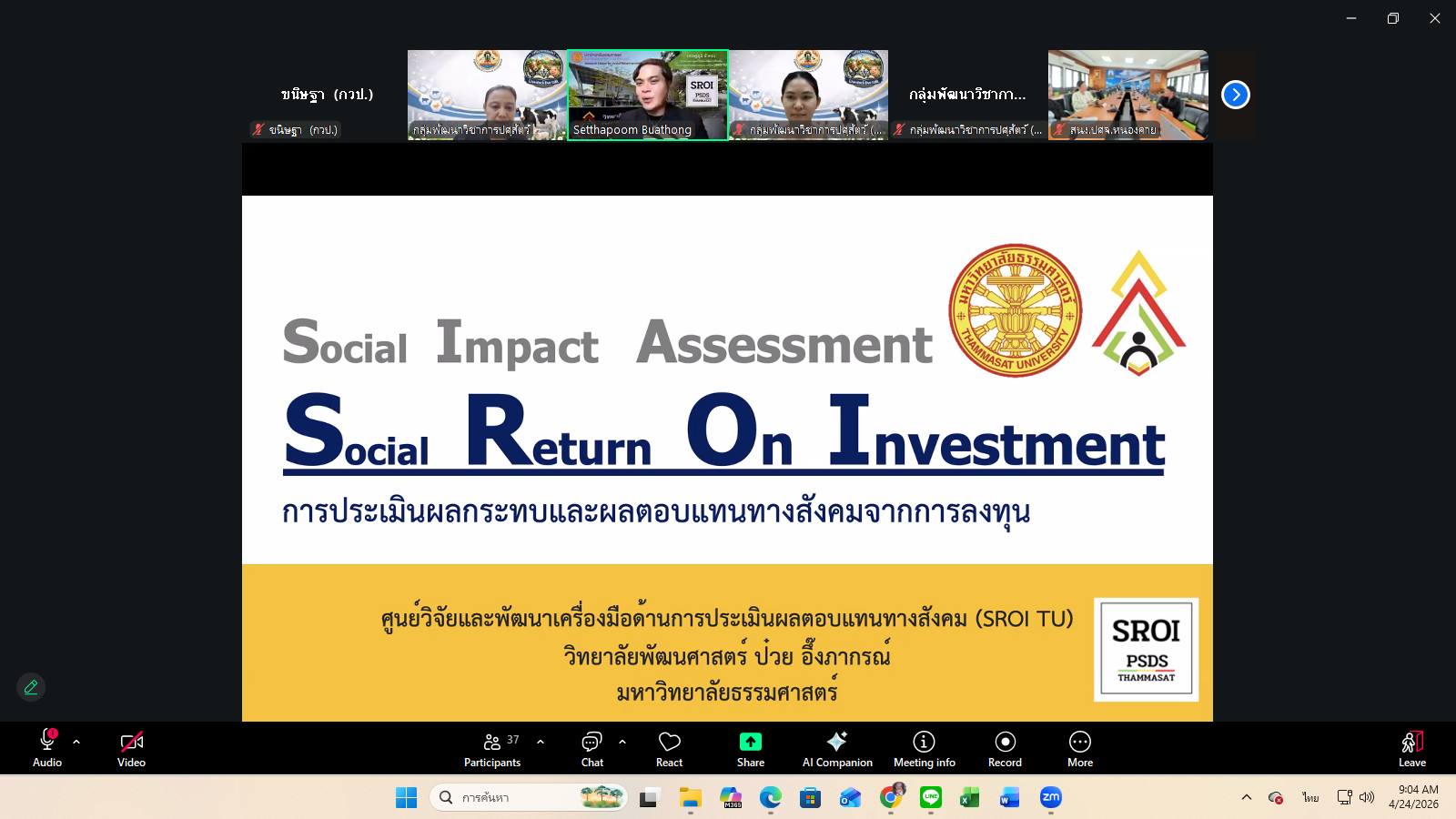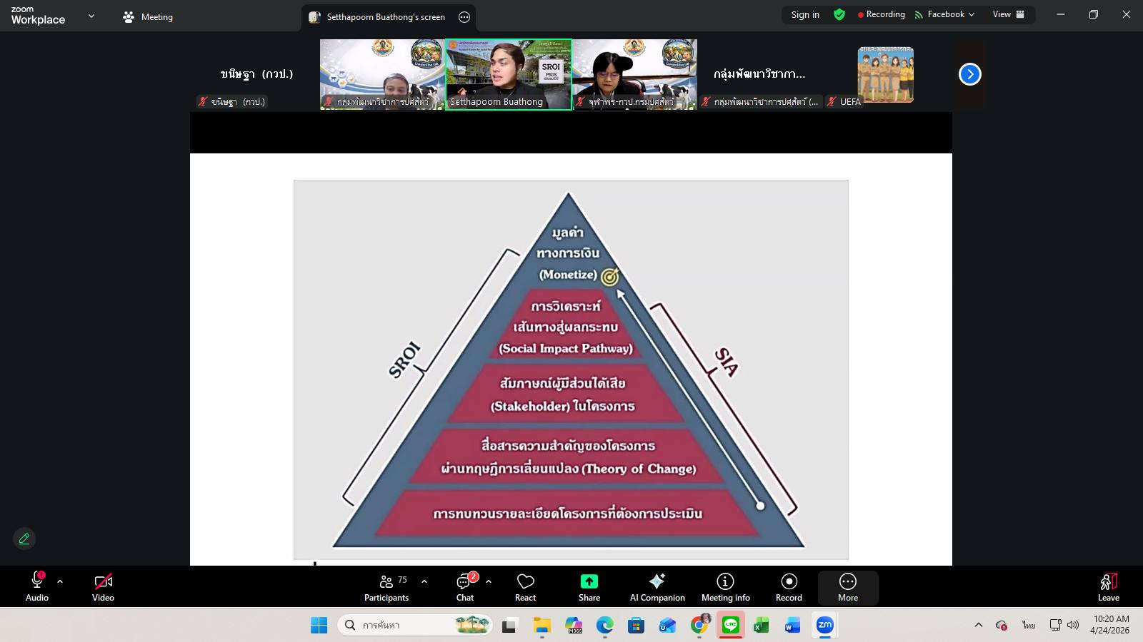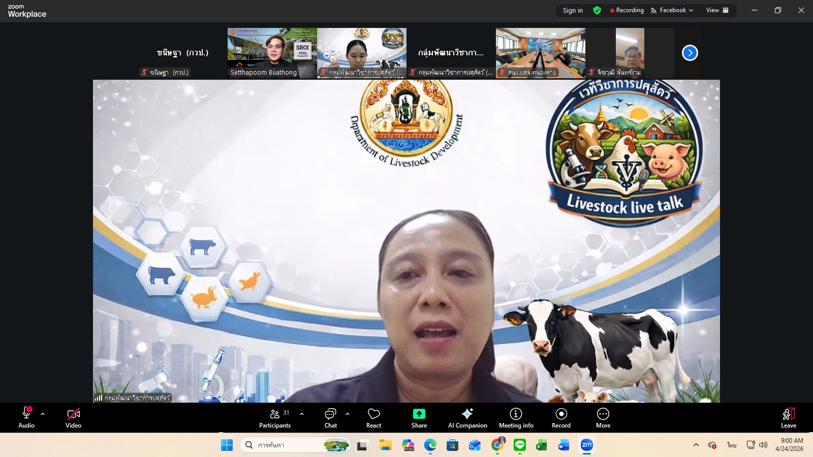 วันที่ 24 เมษายน 2569 เวลา 09.00 น. กลุ่มพัฒนาวิชาการปศุสัตว์จัดเวทีวิชาการปศุสัตว์ ครั้งที่ 47 เรื่อง “จากผลงานวิจัยสู่ผลกระทบที่วัดได้ การประเมิน IMPACT งานวิจัยด้านปศุสัตว์” โดยมีผู้เชี่ยวชาญนพวรรณ บัวมีธูป หัวหน้ากลุ่มพัฒนาวิชาการปศุสัตว์ เป็นประธานการอบรม ซึ่งการอบรมในครั้งนี้ได้รับเกียรติจาก นายเศรษฐภูมิ บัวทอง ผู้อำนวยการศูนย์วิจัยและพัฒนาเครื่องมือด้านการประเมินผลตอบแทนทางสังคม วิทยาลัยพัฒนาศาสตร์ ป๋วย อิ๊งภากรณ์ ผ่านสื่ออิเล็กทรอนิกส์ระบบ zoom และเพจ facebook กลุ่มพัฒนาวิชาการปศุสัตว์