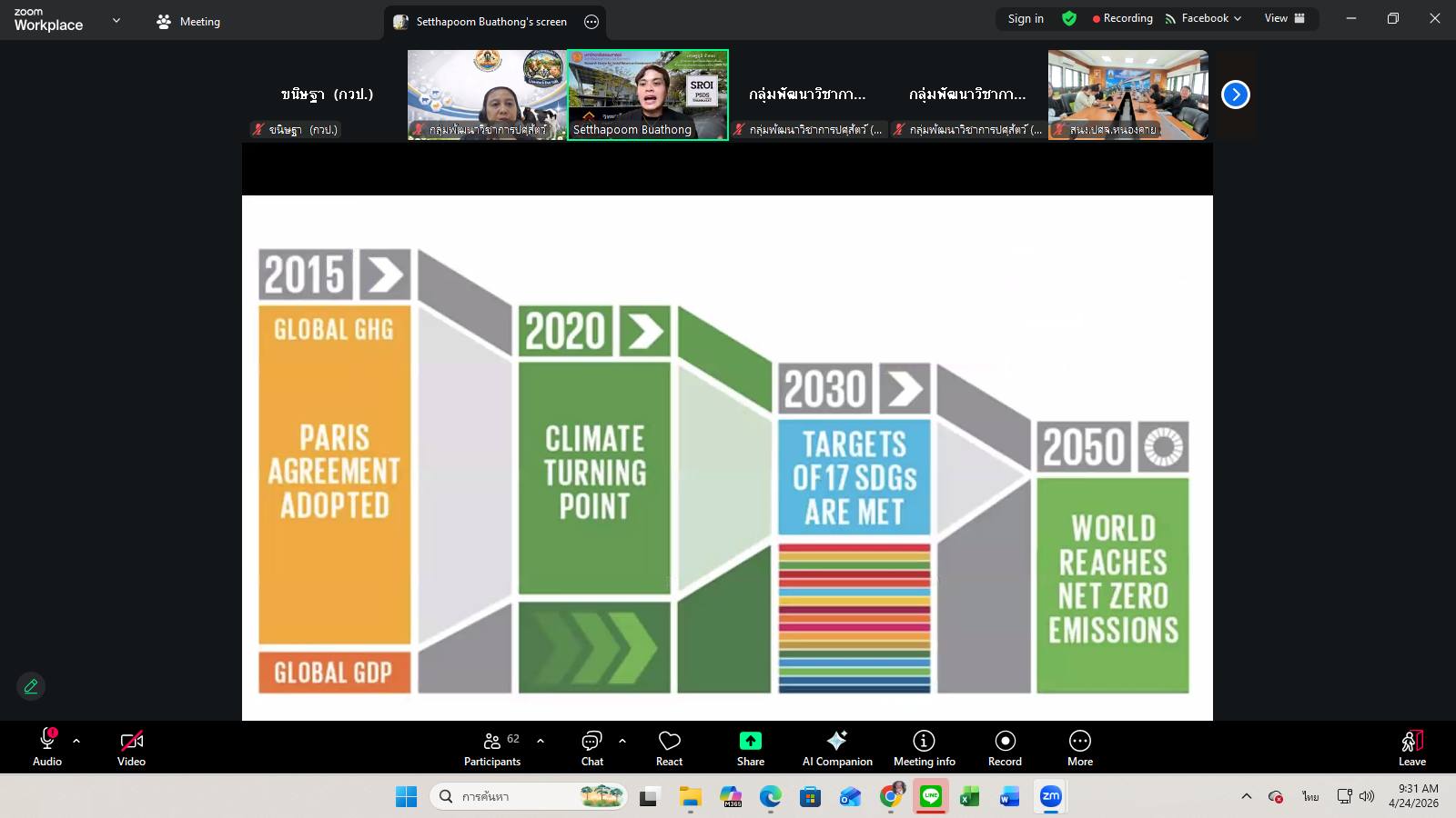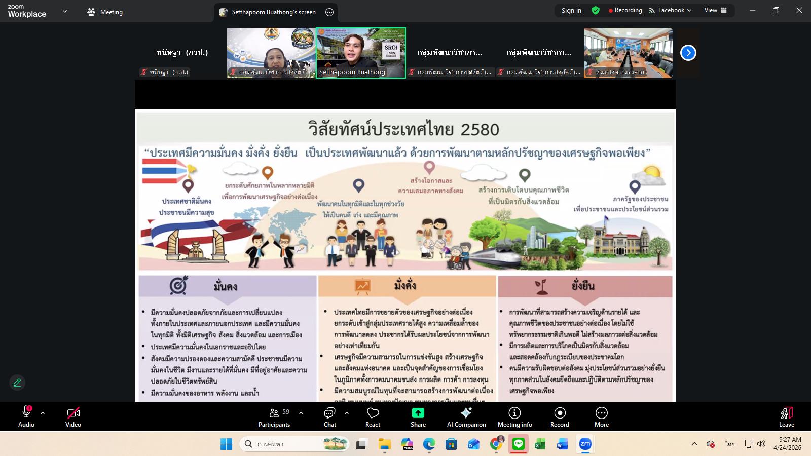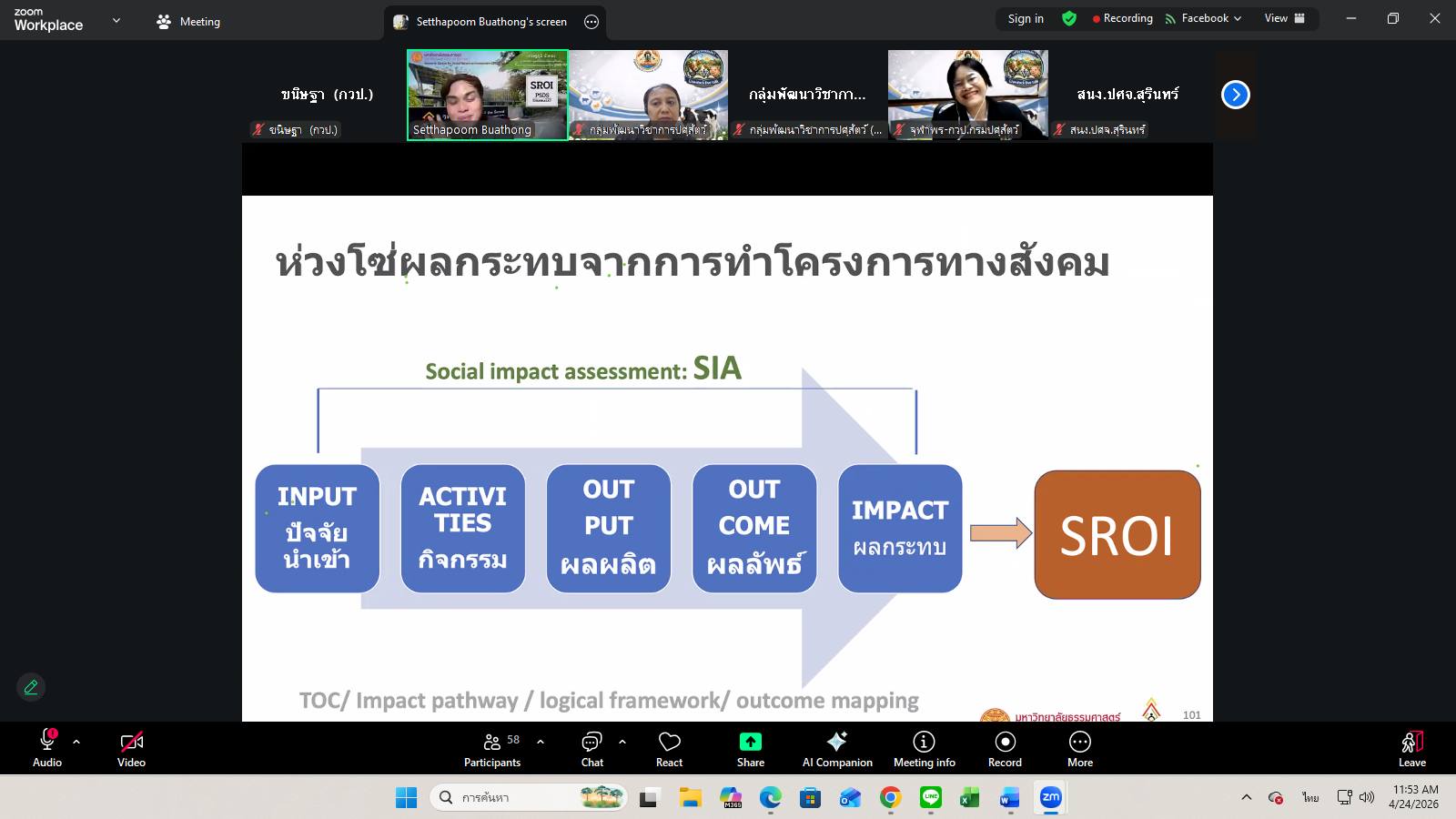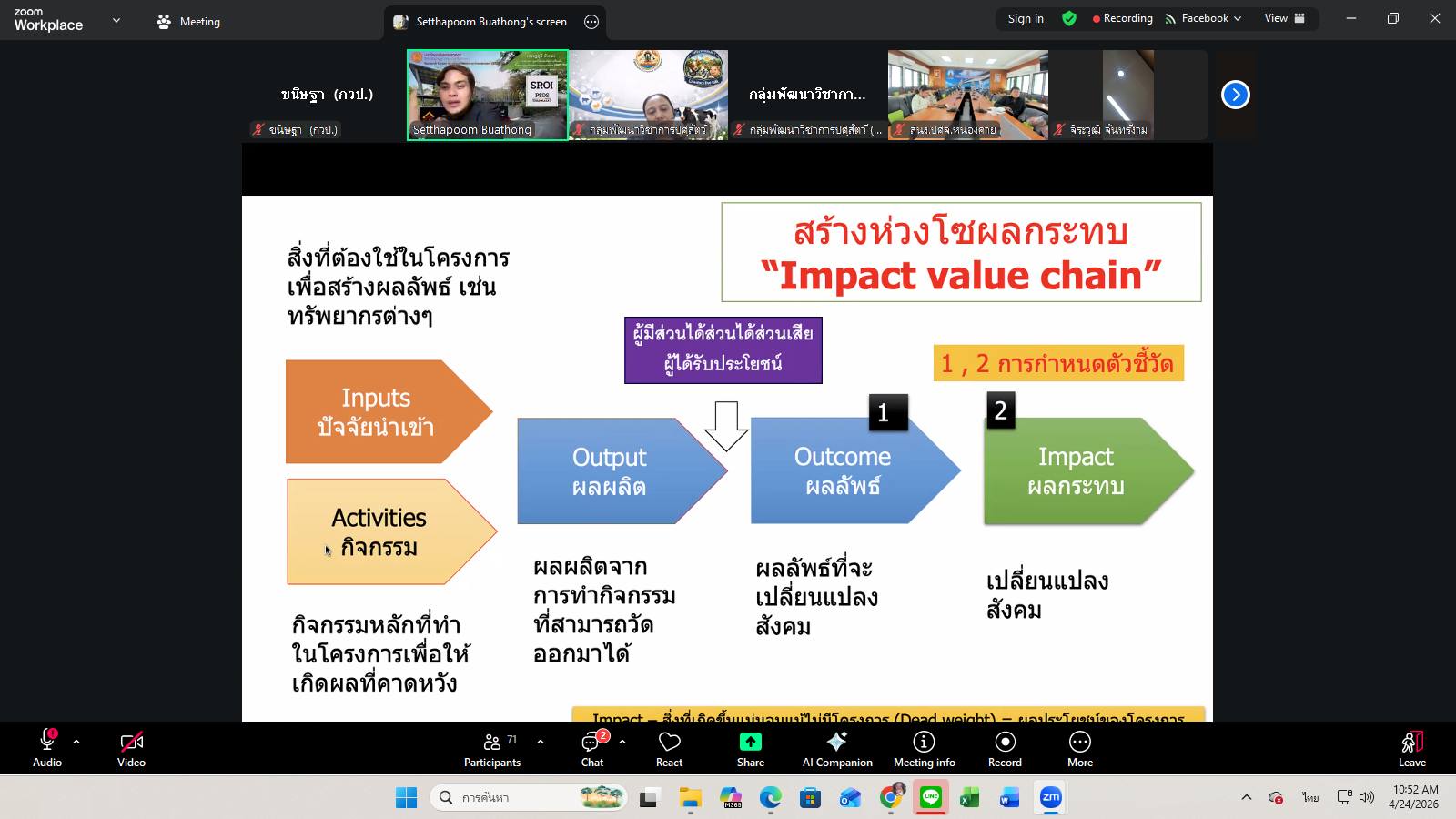 วันที่ 24 เมษายน 2569 เวลา 09.00 น. กลุ่มพัฒนาวิชาการปศุสัตว์จัดเวทีวิชาการปศุสัตว์ ครั้งที่ 47 เรื่อง “จากผลงานวิจัยสู่ผลกระทบที่วัดได้ การประเมิน IMPACT งานวิจัยด้านปศุสัตว์” โดยมีผู้เชี่ยวชาญนพวรรณ บัวมีธูป หัวหน้ากลุ่มพัฒนาวิชาการปศุสัตว์ เป็นประธานการอบรม ซึ่งการอบรมในครั้งนี้ได้รับเกียรติจาก นายเศรษฐภูมิ บัวทอง ผู้อำนวยการศูนย์วิจัยและพัฒนาเครื่องมือด้านการประเมินผลตอบแทนทางสังคม วิทยาลัยพัฒนาศาสตร์ ป๋วย อิ๊งภากรณ์ ผ่านสื่ออิเล็กทรอนิกส์ระบบ zoom และเพจ facebook กลุ่มพัฒนาวิชาการปศุสัตว์