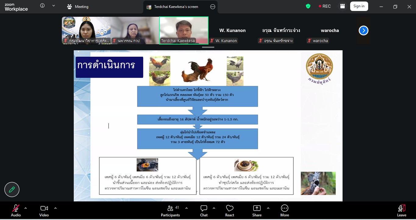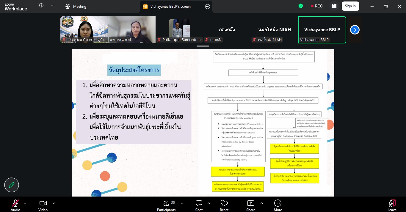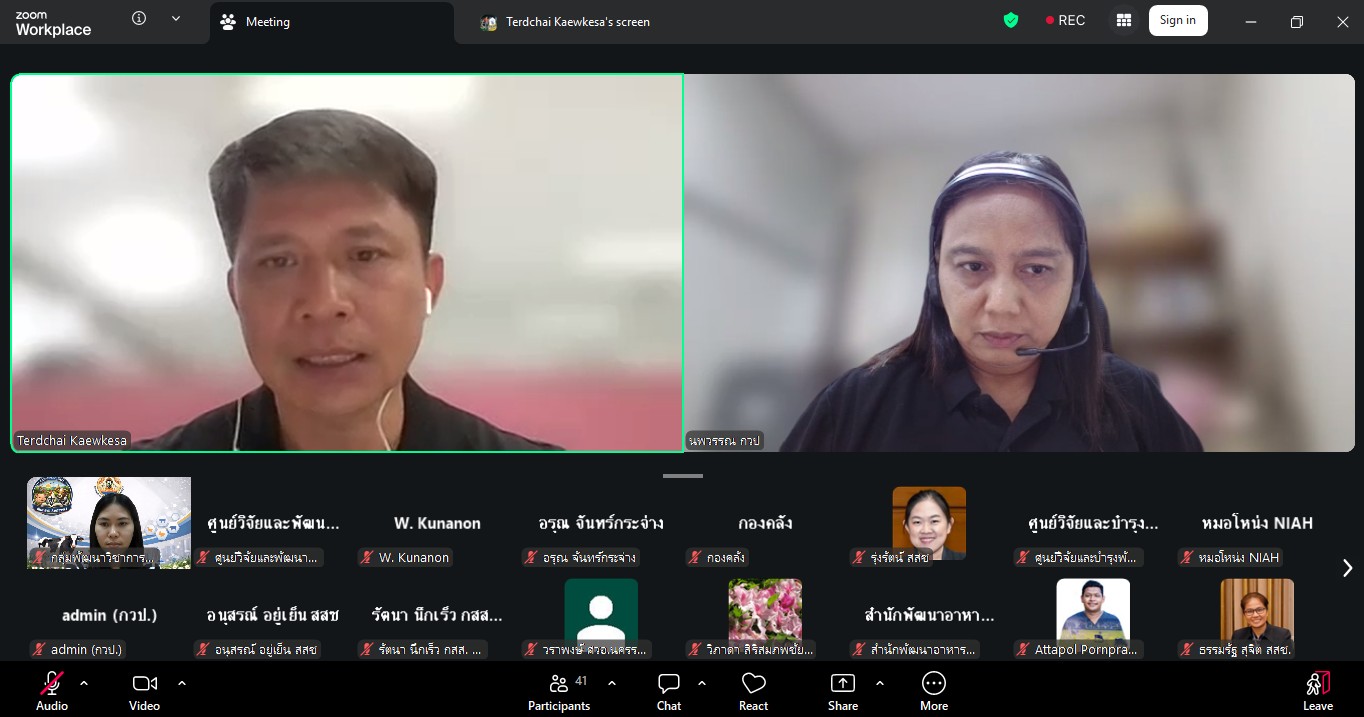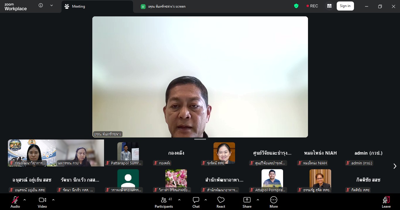 วันที่ 24 มีนาคม 2569 เวลา 09.30 น. กลุ่มพัฒนาวิชาการปศุสัตว์ จัดประชุมติดตามความก้าวหน้าและการปิดโครงการวิจัยที่ได้รับจัดสรรงบประมาณจากกองทุนส่งเสริม วิทยาศาสตร์ วิจัยและนวัตกรรม (ววน.) ปีงบประมาณ พ.ศ. 2569 ผ่านสื่ออิเล็กทรอนิกส์ ระบบ zoom ซึ่งมีผู้เชี่ยวชาญนพวรรณ บัวมีธูป หัวหน้ากลุ่มพัฒนาวิชาการปศุสัตว์ เป็นประธานในที่ประชุม