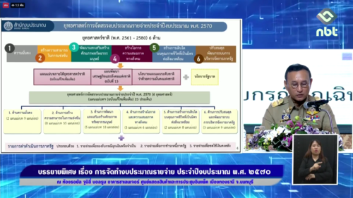 โดยนายกรัฐมนตรี ได้ให้พิจารณาด้านที่ 1-4 เป็นที่ตั้งในการจัดทำงบประมาณรายจ่ายประจำปีงบประมาณ พ.ศ. 2570 และต้องขอเท่าที่จำเป็นเท่านั้น โดยการใช้งบประมาณต้องมีความโปร่งใส และคุ้มค่า
